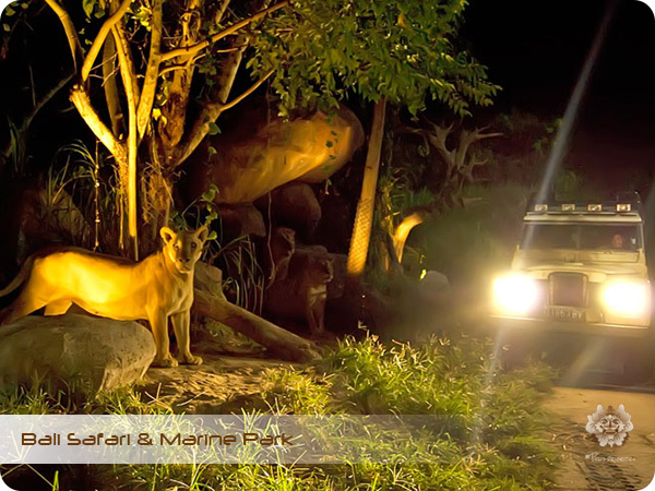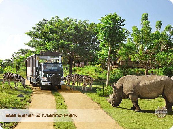 峇里島野生動物園是一個開放性的動物園,所有動物都不關籠子裡而是人們乘坐遊園車來趟「叢林歷險記」,不僅打從各種動物面前經過甚至過橋涉水,頗有《侏儸紀公園》的氣氛,在車內欣賞動物姿態大象、獅子、老虎、四不像等各式各樣的動物就在各位面前悠閒地晃盪;另外還有解說人員用英文解說動物的各種習性,可以更近距離觀賞和了解到蘇門答臘虎、河馬、犀牛、獵豹、獅子...等六十多種野生動物等著大家去拜訪。